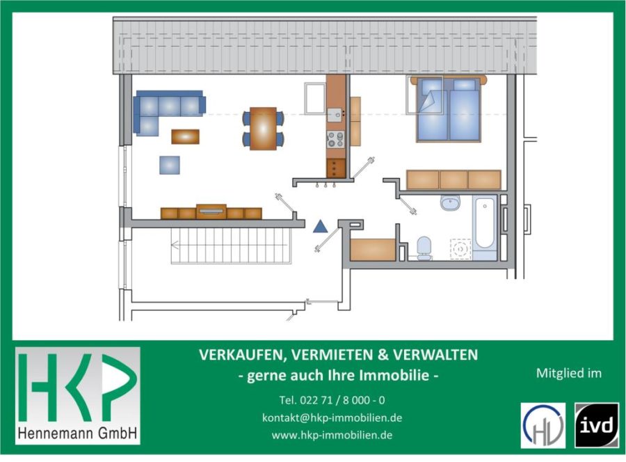 Die gut geschnittene Eigentumswohnung liegt im Dachgeschoß eines gepflegten Mehrfamilienhauses in ruhiger Ortslage.