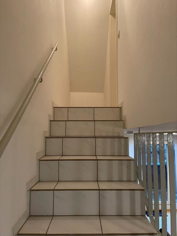 In der ersten Ebene befindet sich die Küche, der großzügige Wohn-/Essbereich von da gelangt man zum Schlafzimmer sowie zum Badezimmer, welches mit einer Badewanne ausgestattet ist. Die Anschlüsse für eine Waschmaschine und einen Trockner befinden sich ebenfalls im Badezimmer. Über die Treppe gelangt man zu einem weiteren Zimmer, welches als Schlafzimmer, Ankleidezimmer oder Büro genutzt werden kann.